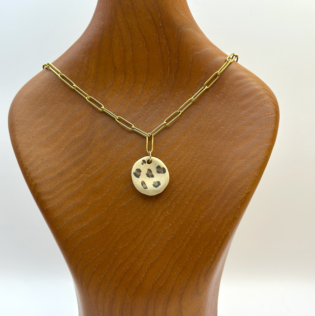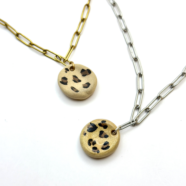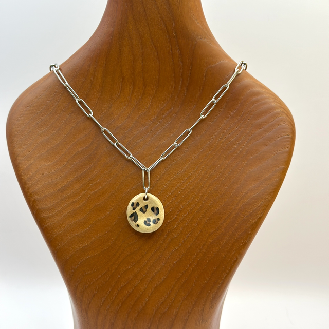 Collier en acier inoxydable avec pendentif “Pierre anti-stress” léopard 🐆